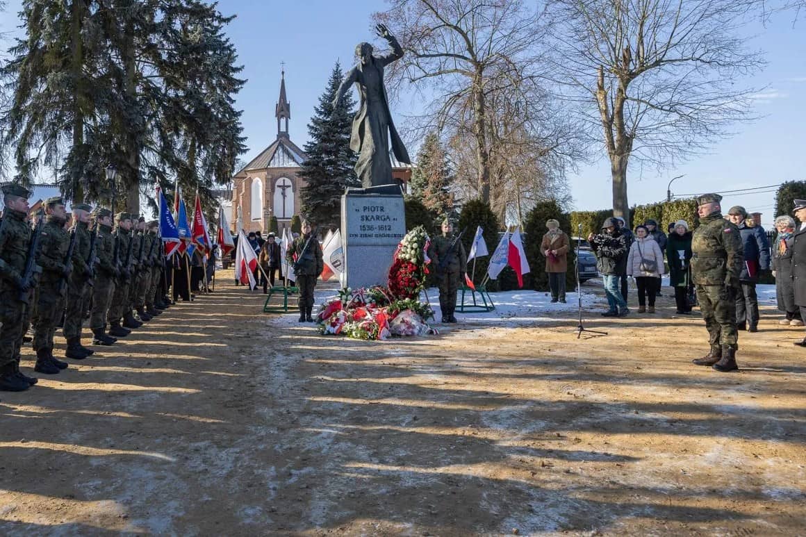 Following the Eucharist, representatives of the Polish Parliament, local government, public institutions, the armed forces and uniformed services, schools, and standard-bearing delegations gathered at the monument of Fr. Piotr Skarga. Despite the severe frost, a brief ceremony took place, during which flowers were laid and soldiers lit a memorial candle.