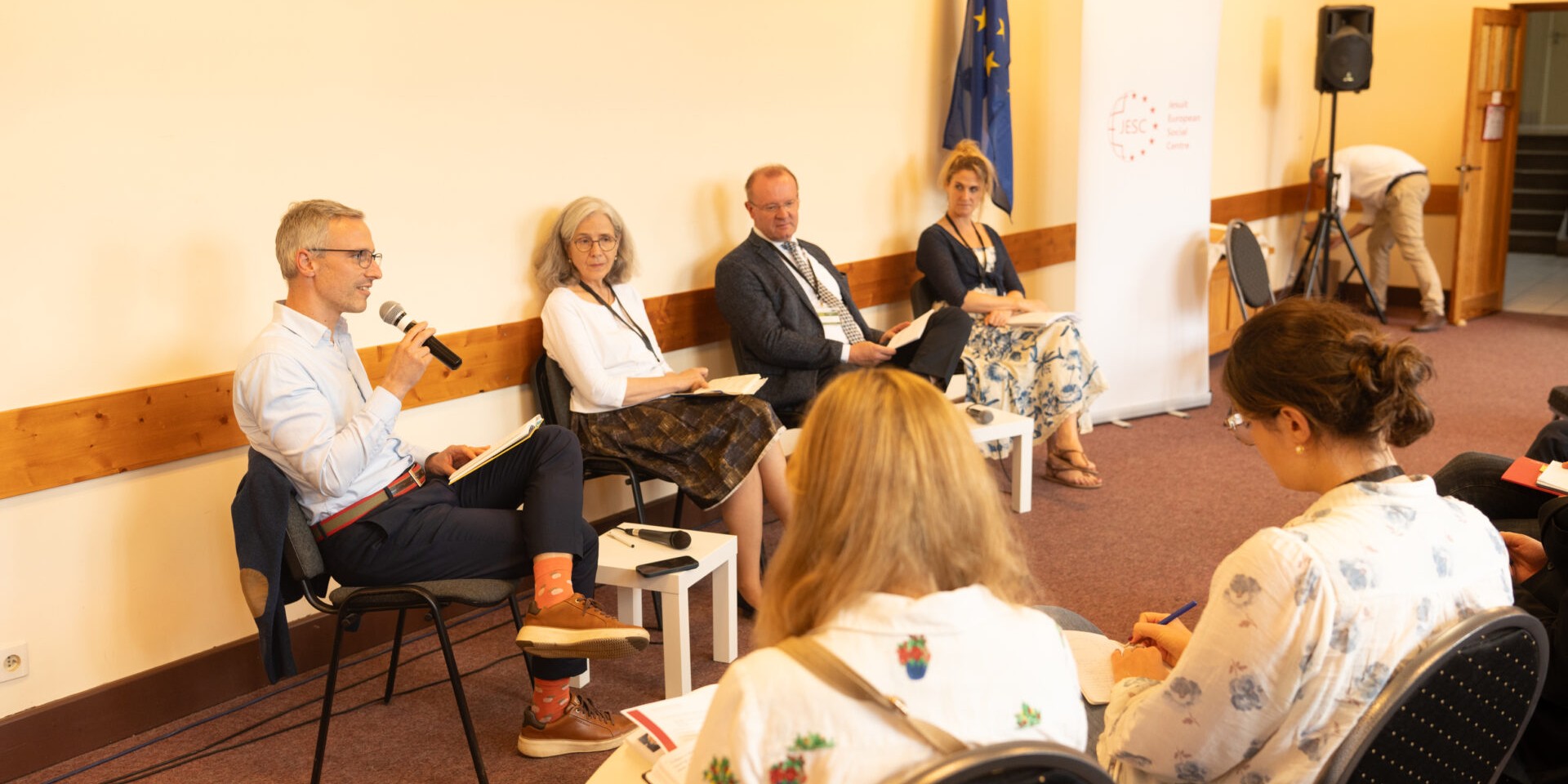 The core mission at JESC (Jesuit European Social Centre) is to reflect on the life, policies and practice of the European Union. We seek an engagement which authentically expresses Christian faith, remains close to the poor and marginalised, analyses social reality with competence, and advocates for justice in European political structures. In a context in which the EU is undergoing the most acute political crisis of its existence, JESC seeks a critical but constructive engagement with the EU. As a work of the Jesuit Conference of European Provincials, JESC expresses the commitment of the Society of Jesus to a Europe where human rights, freedom and solidarity are the foundation of integration.